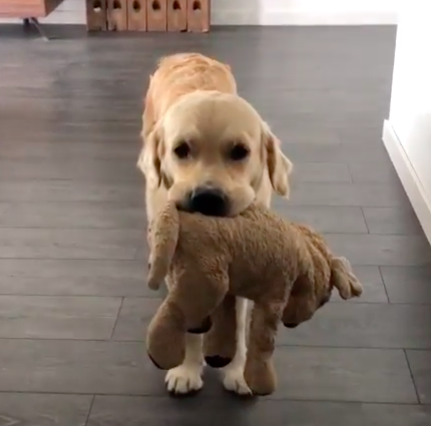 Golden Retriever Perks Up When Favorite Toy Also Wears Cone Of Shame The Dodo